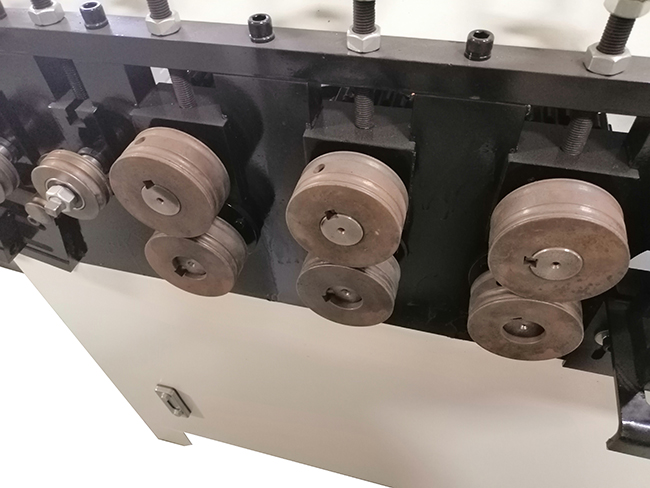 4、送線輪、調(diào)直輪、成型輪采用優(yōu)質(zhì)合金鋼40絡(luò)和45#鋼,經(jīng)鍛胚,高頻催火,硬度好,耐磨性高。